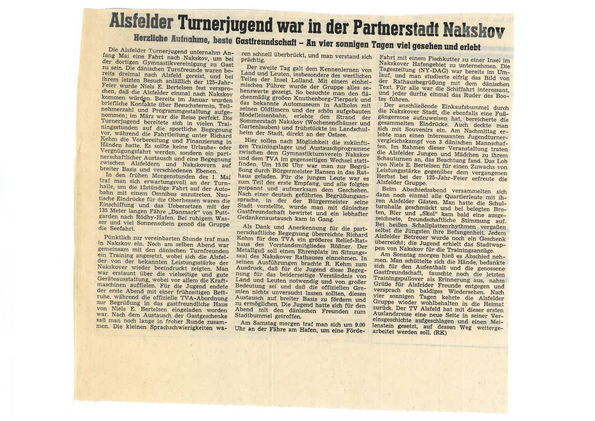 OZ Bericht über Nakskov Reise der Turnerjugend